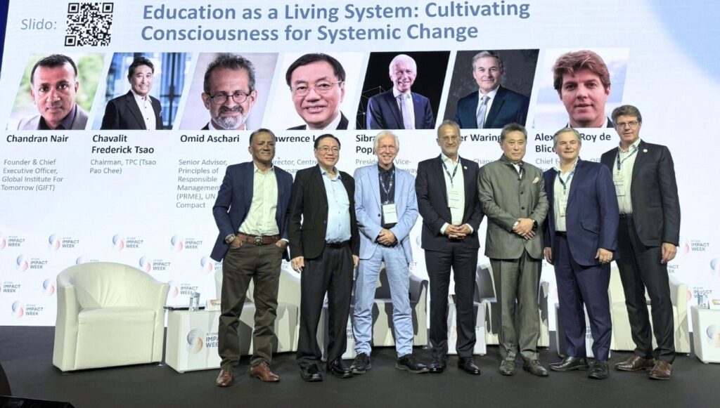 In another panel, Prof Loh joined local and international leaders to discuss education, consciousness and systemic change. The discussion explored human capital, AI, resilience, collective values, and equality—probing how learning, the role of educators, and a shift in consciousness can spark systemic change.